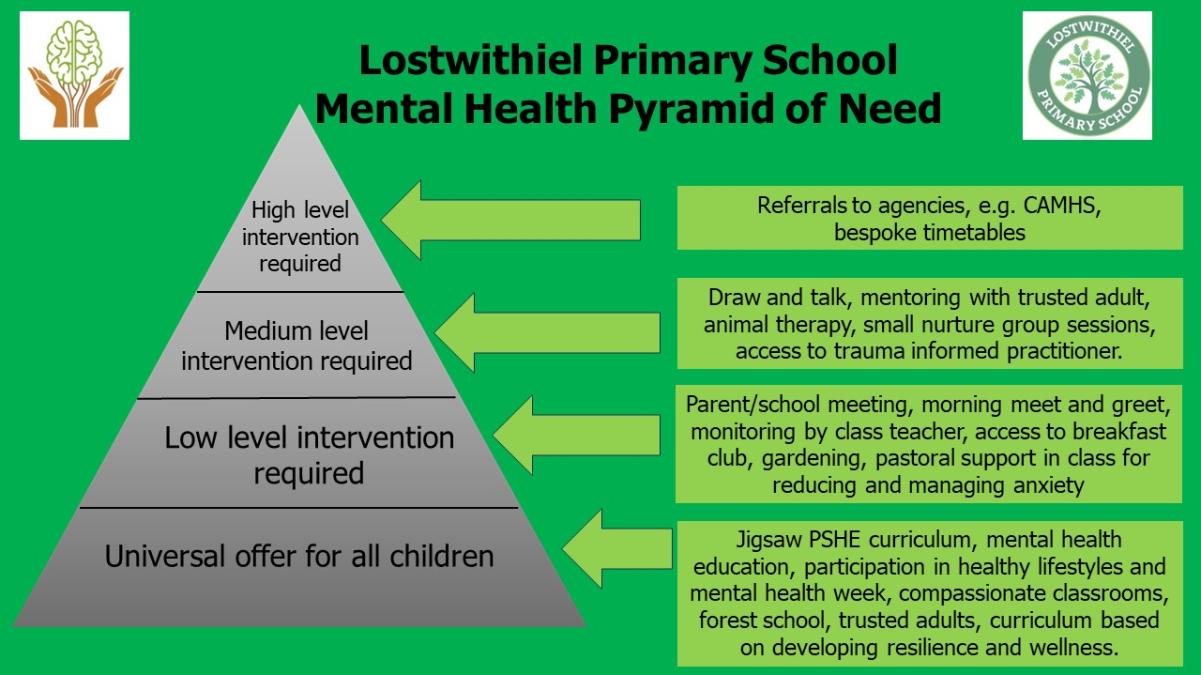 At Lostwithiel Primary School we believe in promoting good mental health and wellbeing for the whole school community. With the pressures of modern life, social media and the impact of the pandemic affecting us all, it is no wonder that we are seeing an increase in mental health problems with children.